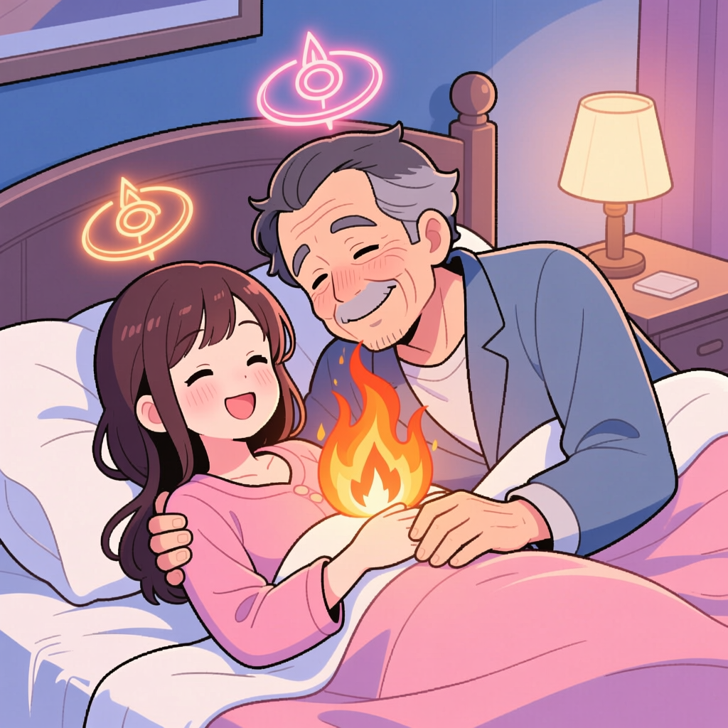 目を合わせ、第三の目を意識します。旦那さんは妻様の瞳に寝取られの情熱を注ぎ、妻様は優しく受け止めます。軽く手を重ね、金の積極性を銀の受容性に溶け込ませましょう。徐々に性的な高揚が共有されます。